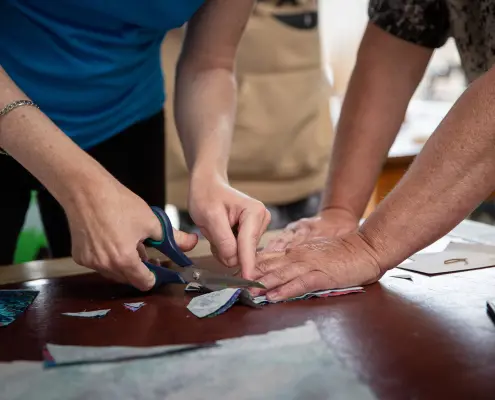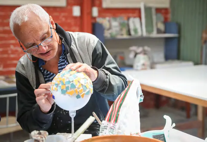 We offer a wide range of activities; arts, crafts, screen printing, sculpture, fabric/textile arts, ceramics, candle making, jewellery making, mosaic, weaving and paper making. Our trained workshop facilitators (who are all professional artists/tutors) are dedicated to providing a person driven experience, encouraging positive risk-taking and assisting people to explore their individual creativity.